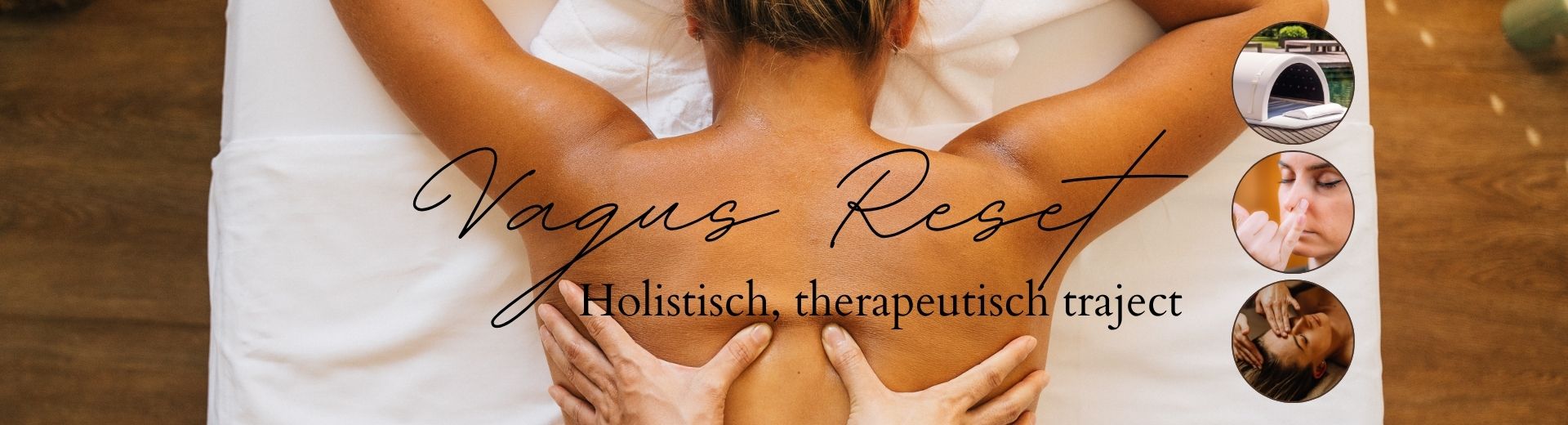Het Holistisch Therapeutisch Vagus Reset Traject is een uitnodiging om te vertragen, te zakken en je zenuwstelsel opnieuw te laten ervaren wat rust is. Het Vagus Reset Traject bestaat uit vijf zorgvuldig opgebouwde sessies. Na afloop kan het traject, indien gewenst, worden voortgezet in onderhoudsbehandelingen, afgestemd op wat het lichaam en zenuwstelsel op dat moment nodig hebben.